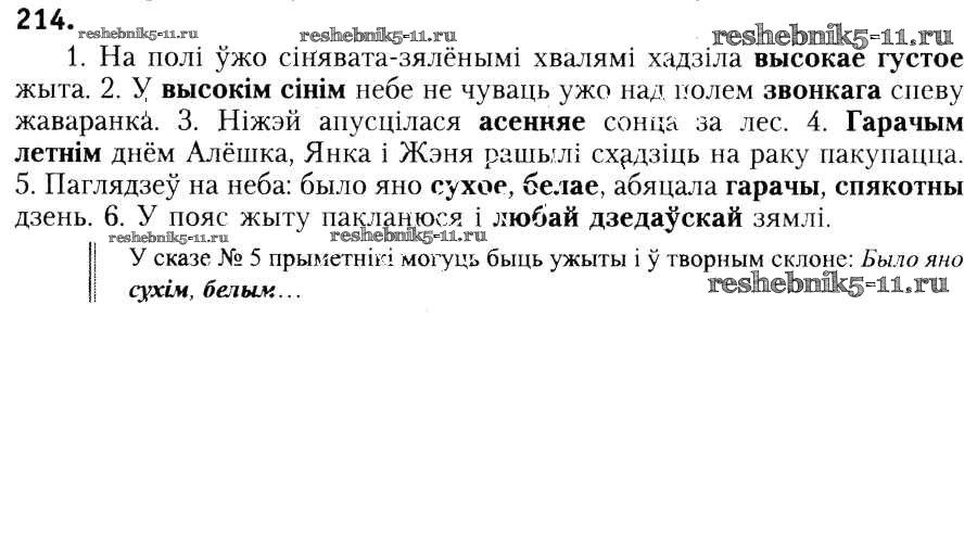 Готовая домашняя работа с ответами по Белорусскому языку за 6 класс Красней, Лаурель, Рачэўскі Учебник Национальный институт образования 2015 ФГОС - Практыкаванні 214