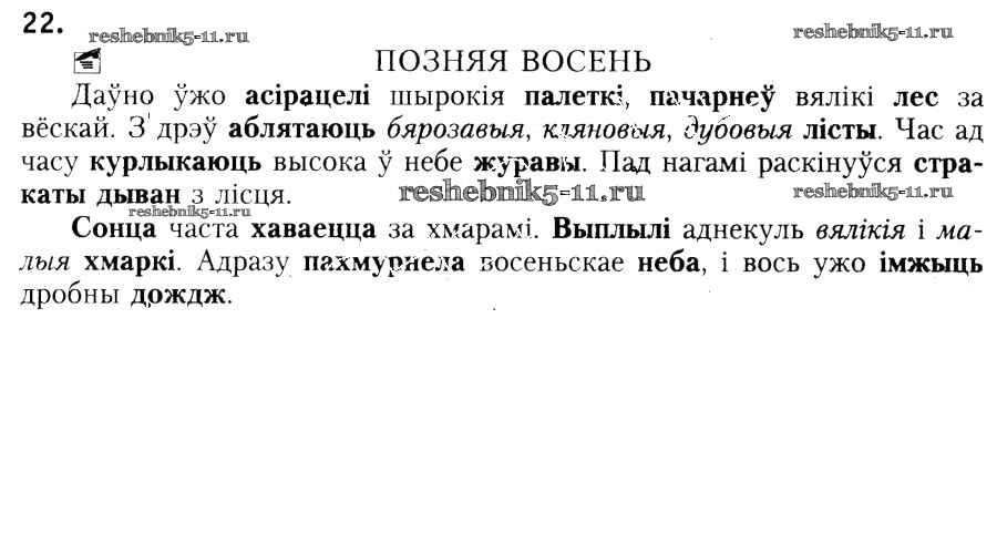 Готовая домашняя работа с ответами по Белорусскому языку за 6 класс Красней, Лаурель, Рачэўскі Учебник Национальный институт образования 2015 ФГОС - Практыкаванні 22