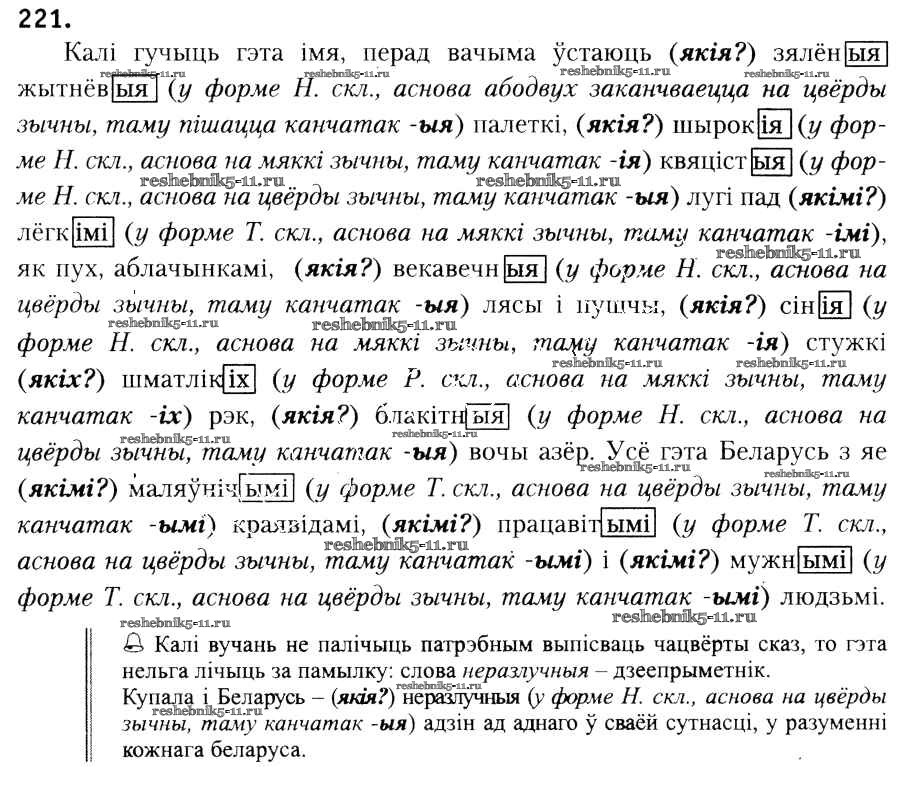 Готовая домашняя работа с ответами по Белорусскому языку за 6 класс Красней, Лаурель, Рачэўскі Учебник Национальный институт образования 2015 ФГОС - Практыкаванні 221