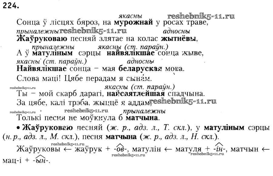 Готовая домашняя работа с ответами по Белорусскому языку за 6 класс Красней, Лаурель, Рачэўскі Учебник Национальный институт образования 2015 ФГОС - Практыкаванні 224