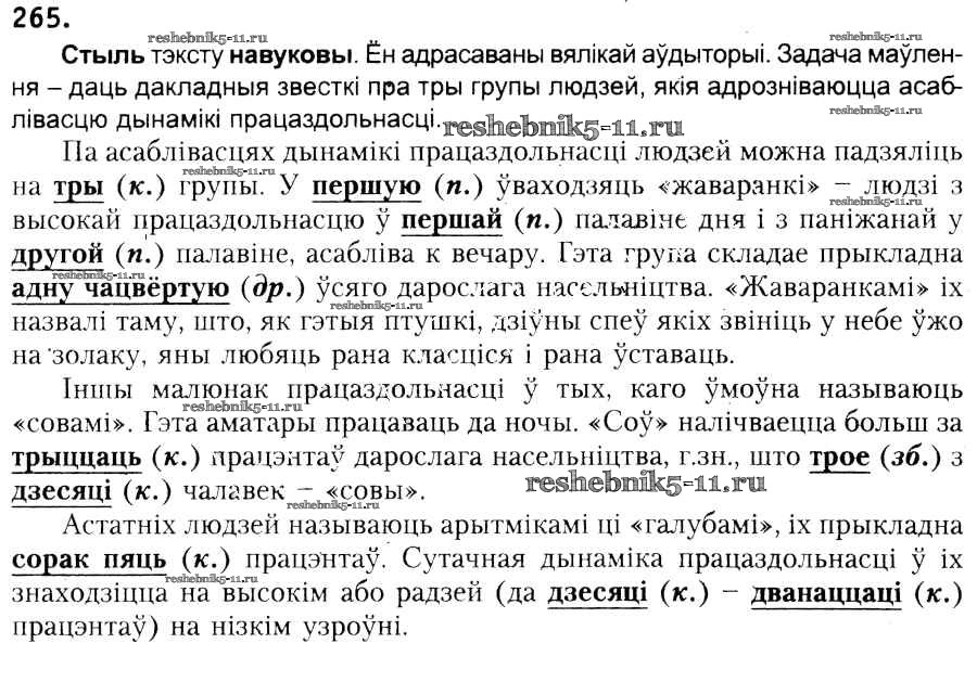 Готовая домашняя работа с ответами по Белорусскому языку за 6 класс Красней, Лаурель, Рачэўскі Учебник Национальный институт образования 2015 ФГОС - Практыкаванні 265