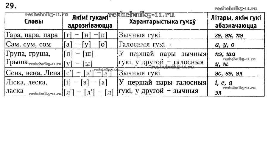 Готовая домашняя работа с ответами по Белорусскому языку за 6 класс Красней, Лаурель, Рачэўскі Учебник Национальный институт образования 2015 ФГОС - Практыкаванні 29