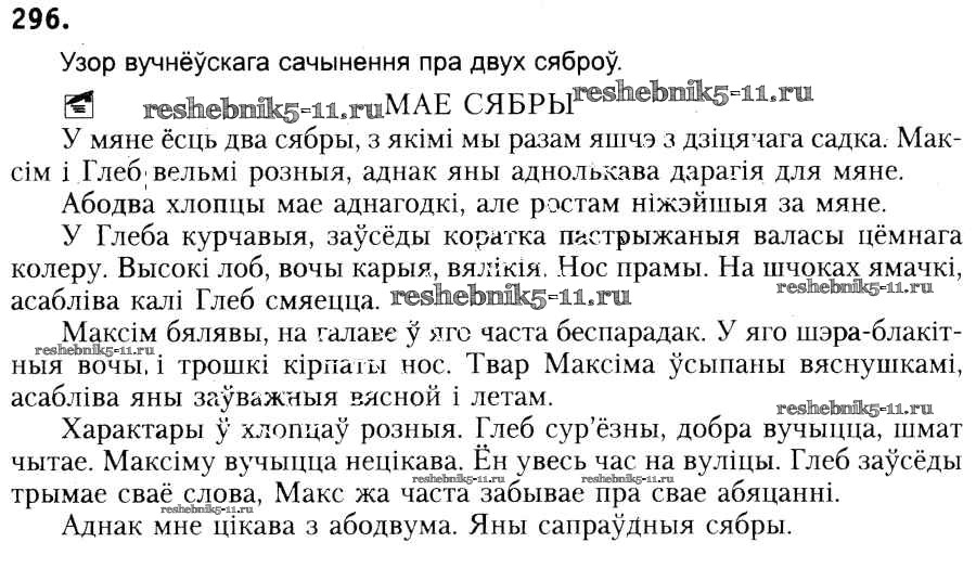 Готовая домашняя работа с ответами по Белорусскому языку за 6 класс Красней, Лаурель, Рачэўскі Учебник Национальный институт образования 2015 ФГОС - Практыкаванні 296