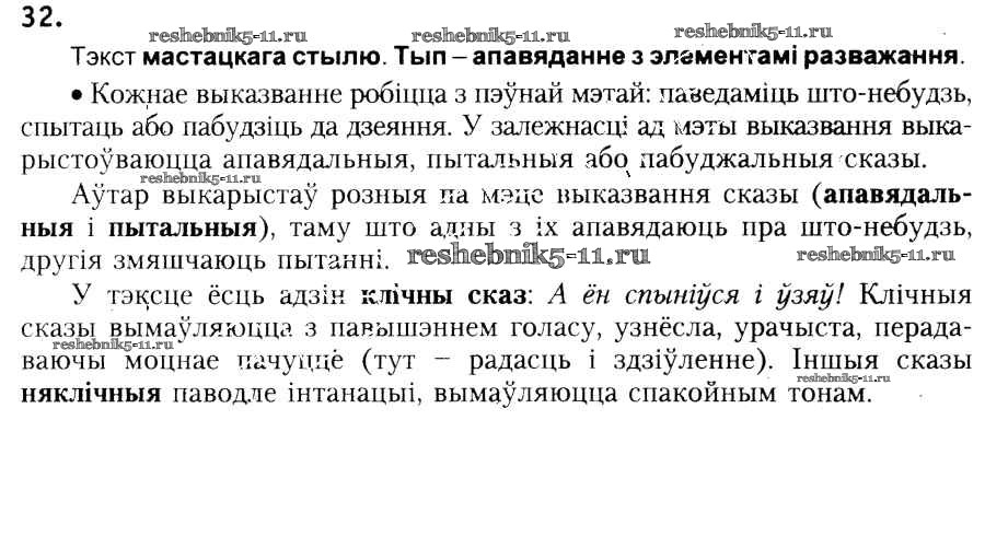 Готовая домашняя работа с ответами по Белорусскому языку за 6 класс Красней, Лаурель, Рачэўскі Учебник Национальный институт образования 2015 ФГОС - Практыкаванні 32