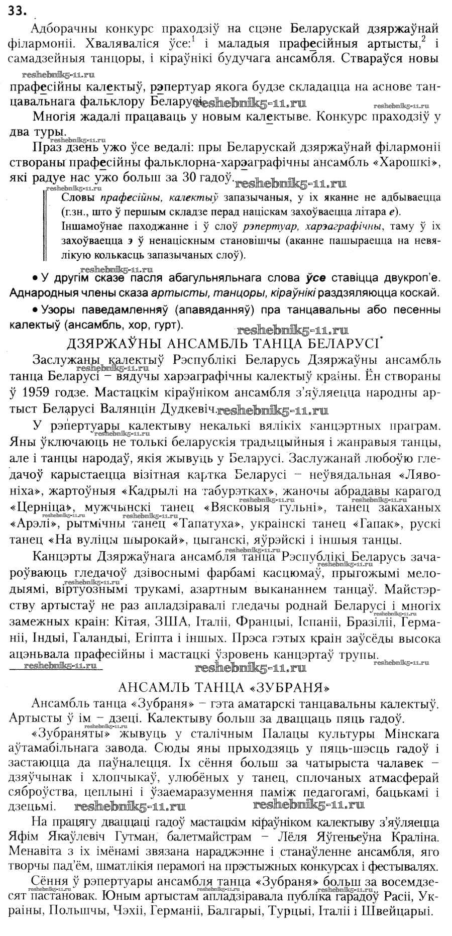 Готовая домашняя работа с ответами по Белорусскому языку за 6 класс Красней, Лаурель, Рачэўскі Учебник Национальный институт образования 2015 ФГОС - Практыкаванні 33