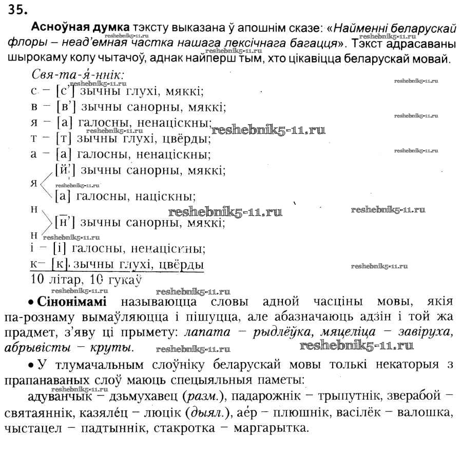 Готовая домашняя работа с ответами по Белорусскому языку за 6 класс Красней, Лаурель, Рачэўскі Учебник Национальный институт образования 2015 ФГОС - Практыкаванні 35