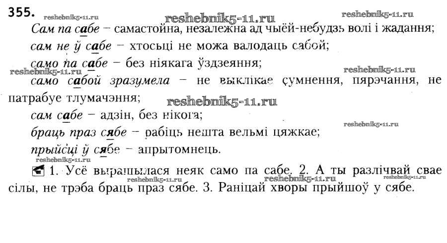 Готовая домашняя работа с ответами по Белорусскому языку за 6 класс Красней, Лаурель, Рачэўскі Учебник Национальный институт образования 2015 ФГОС - Практыкаванні 355
