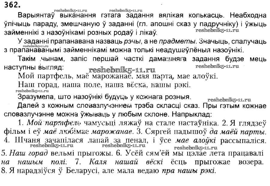 Готовая домашняя работа с ответами по Белорусскому языку за 6 класс Красней, Лаурель, Рачэўскі Учебник Национальный институт образования 2015 ФГОС - Практыкаванні 362