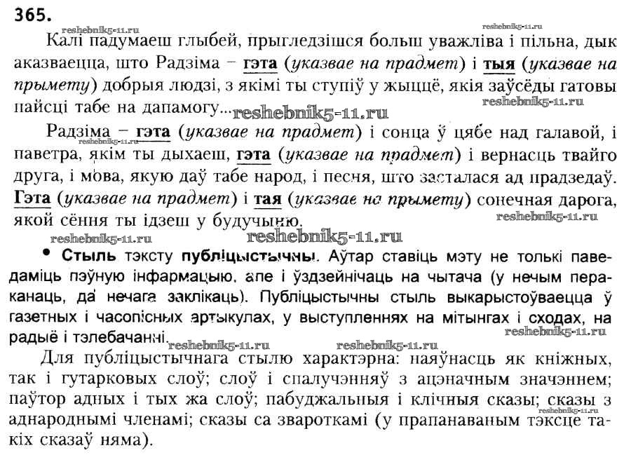 Готовая домашняя работа с ответами по Белорусскому языку за 6 класс Красней, Лаурель, Рачэўскі Учебник Национальный институт образования 2015 ФГОС - Практыкаванні 365