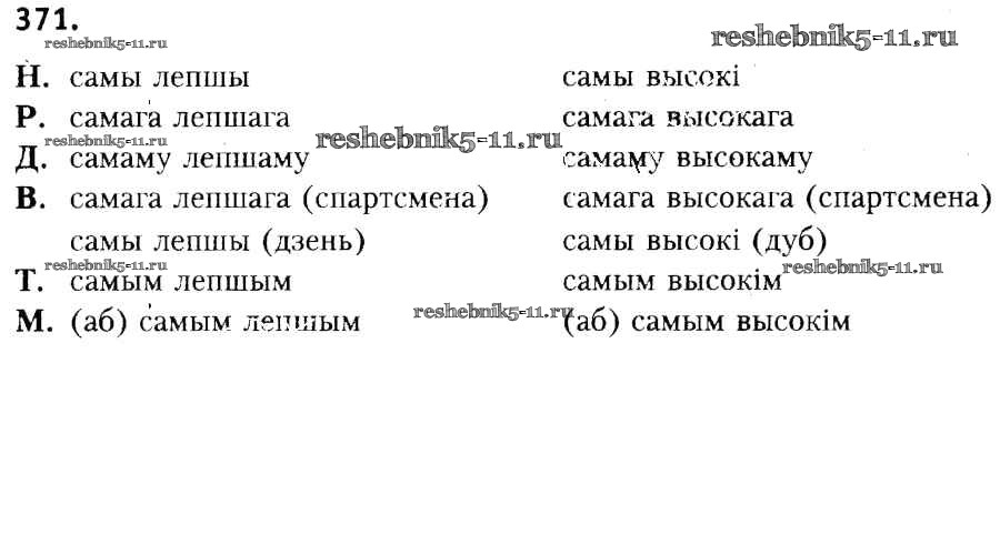 Готовая домашняя работа с ответами по Белорусскому языку за 6 класс Красней, Лаурель, Рачэўскі Учебник Национальный институт образования 2015 ФГОС - Практыкаванні 371