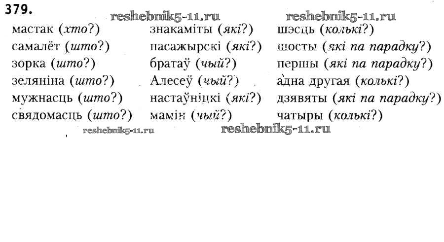 Готовая домашняя работа с ответами по Белорусскому языку за 6 класс Красней, Лаурель, Рачэўскі Учебник Национальный институт образования 2015 ФГОС - Практыкаванні 379