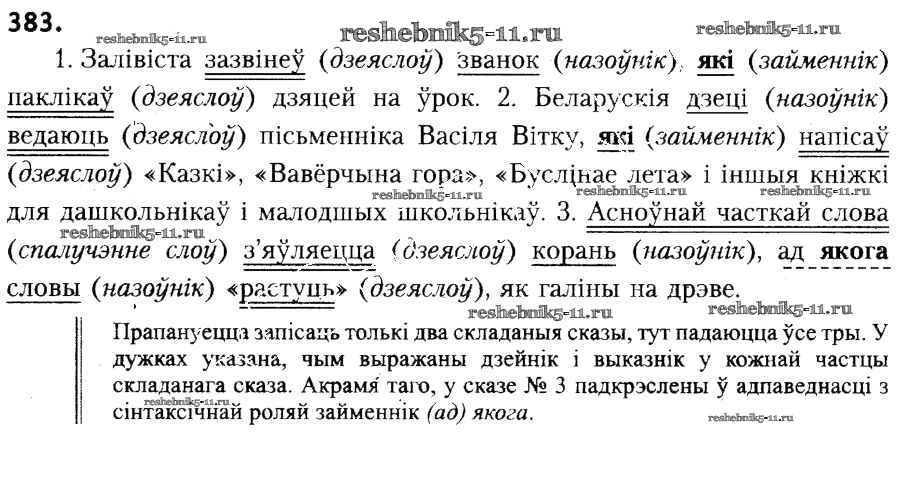 Готовая домашняя работа с ответами по Белорусскому языку за 6 класс Красней, Лаурель, Рачэўскі Учебник Национальный институт образования 2015 ФГОС - Практыкаванні 383