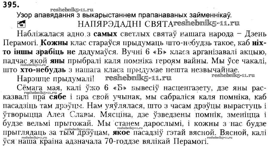 Готовая домашняя работа с ответами по Белорусскому языку за 6 класс Красней, Лаурель, Рачэўскі Учебник Национальный институт образования 2015 ФГОС - Практыкаванні 395