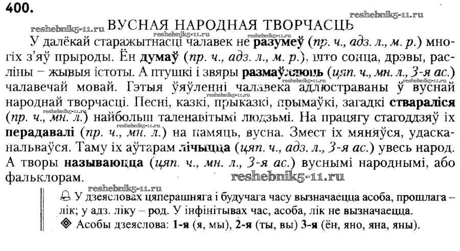 Готовая домашняя работа с ответами по Белорусскому языку за 6 класс Красней, Лаурель, Рачэўскі Учебник Национальный институт образования 2015 ФГОС - Практыкаванні 400