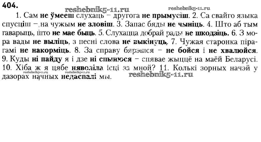 Готовая домашняя работа с ответами по Белорусскому языку за 6 класс Красней, Лаурель, Рачэўскі Учебник Национальный институт образования 2015 ФГОС - Практыкаванні 404
