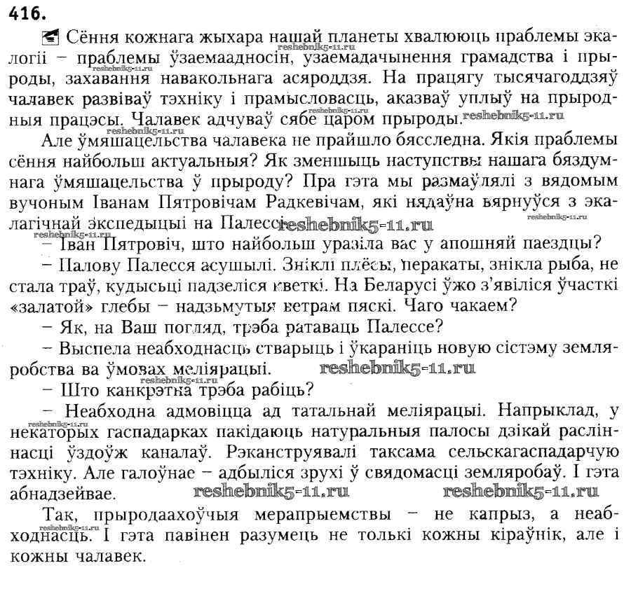 Готовая домашняя работа с ответами по Белорусскому языку за 6 класс Красней, Лаурель, Рачэўскі Учебник Национальный институт образования 2015 ФГОС - Практыкаванні 416