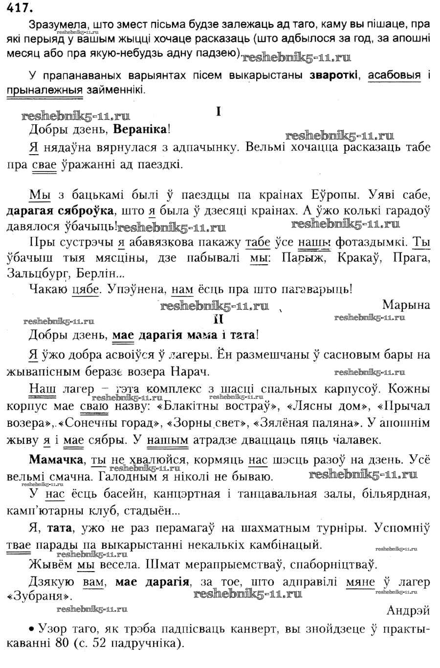 Готовая домашняя работа с ответами по Белорусскому языку за 6 класс Красней, Лаурель, Рачэўскі Учебник Национальный институт образования 2015 ФГОС - Практыкаванні 417