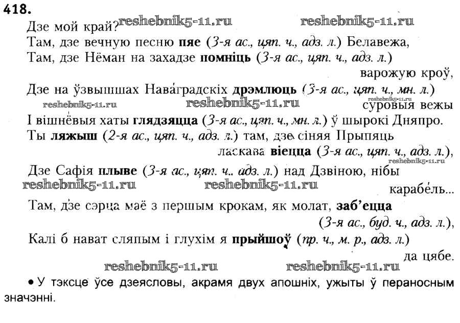 Готовая домашняя работа с ответами по Белорусскому языку за 6 класс Красней, Лаурель, Рачэўскі Учебник Национальный институт образования 2015 ФГОС - Практыкаванні 418