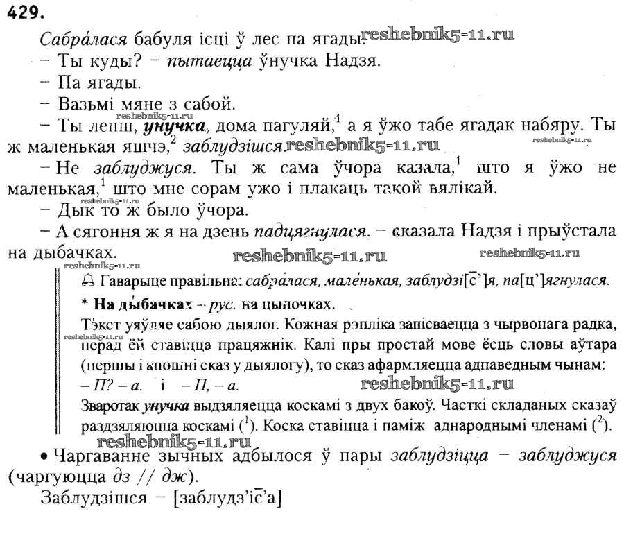 Готовая домашняя работа с ответами по Белорусскому языку за 6 класс Красней, Лаурель, Рачэўскі Учебник Национальный институт образования 2015 ФГОС - Практыкаванні 429