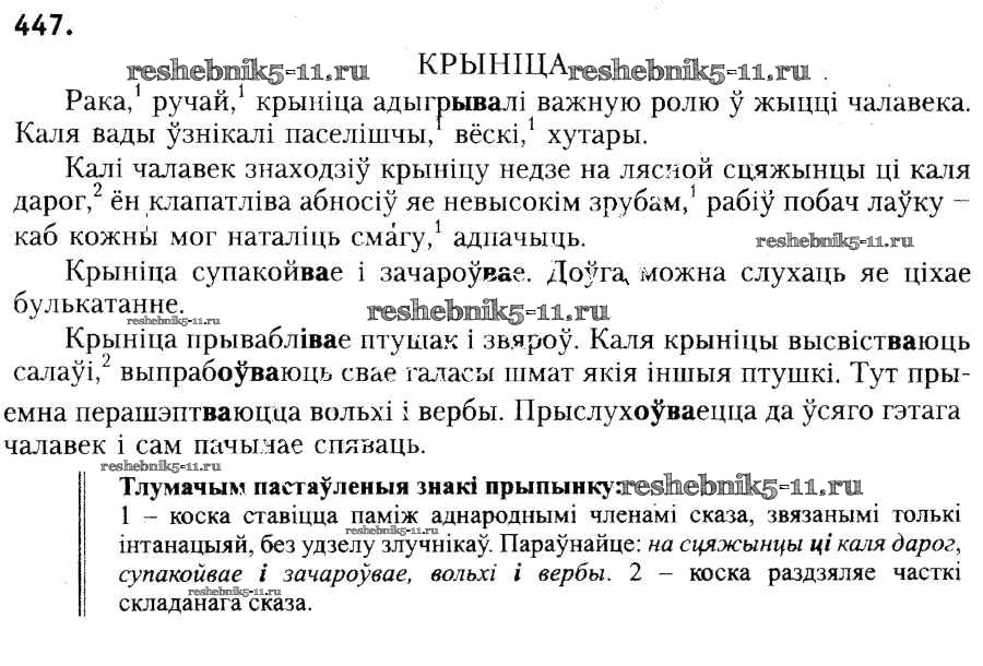 Готовая домашняя работа с ответами по Белорусскому языку за 6 класс Красней, Лаурель, Рачэўскі Учебник Национальный институт образования 2015 ФГОС - Практыкаванні 447