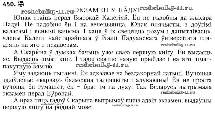 Готовая домашняя работа с ответами по Белорусскому языку за 6 класс Красней, Лаурель, Рачэўскі Учебник Национальный институт образования 2015 ФГОС - Практыкаванні 450
