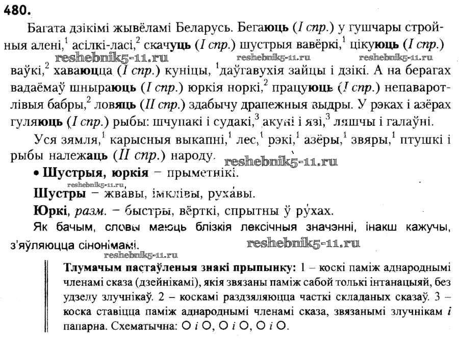 Готовая домашняя работа с ответами по Белорусскому языку за 6 класс Красней, Лаурель, Рачэўскі Учебник Национальный институт образования 2015 ФГОС - Практыкаванні 480