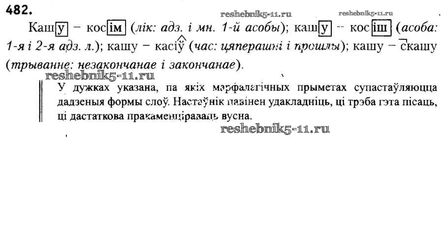 Готовая домашняя работа с ответами по Белорусскому языку за 6 класс Красней, Лаурель, Рачэўскі Учебник Национальный институт образования 2015 ФГОС - Практыкаванні 482