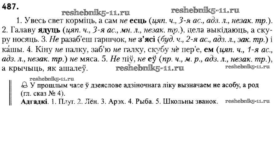 Готовая домашняя работа с ответами по Белорусскому языку за 6 класс Красней, Лаурель, Рачэўскі Учебник Национальный институт образования 2015 ФГОС - Практыкаванні 487