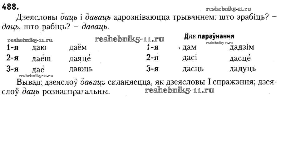 Готовая домашняя работа с ответами по Белорусскому языку за 6 класс Красней, Лаурель, Рачэўскі Учебник Национальный институт образования 2015 ФГОС - Практыкаванні 488