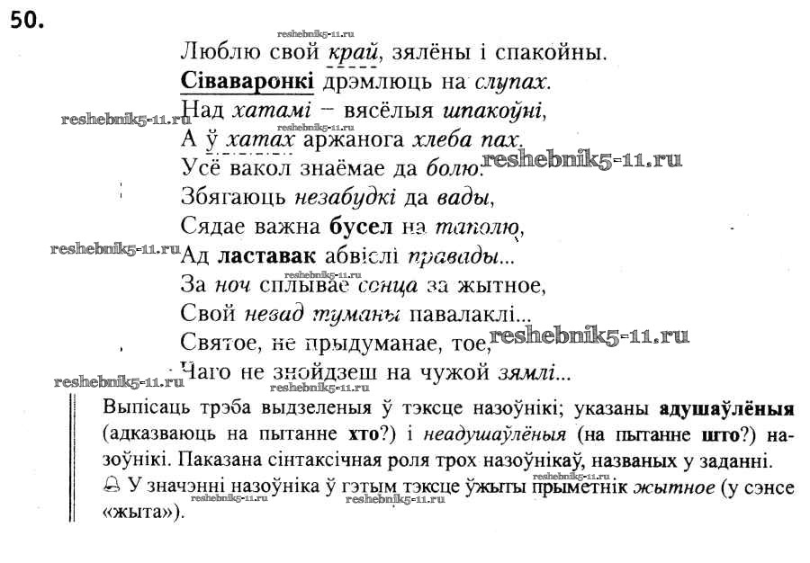 Готовая домашняя работа с ответами по Белорусскому языку за 6 класс Красней, Лаурель, Рачэўскі Учебник Национальный институт образования 2015 ФГОС - Практыкаванні 50