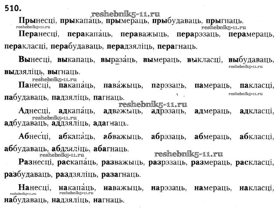 Готовая домашняя работа с ответами по Белорусскому языку за 6 класс Красней, Лаурель, Рачэўскі Учебник Национальный институт образования 2015 ФГОС - Практыкаванні 510