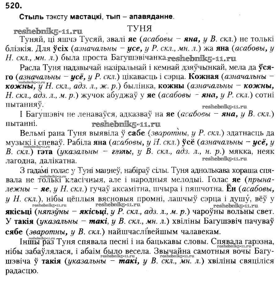 Готовая домашняя работа с ответами по Белорусскому языку за 6 класс Красней, Лаурель, Рачэўскі Учебник Национальный институт образования 2015 ФГОС - Практыкаванні 520