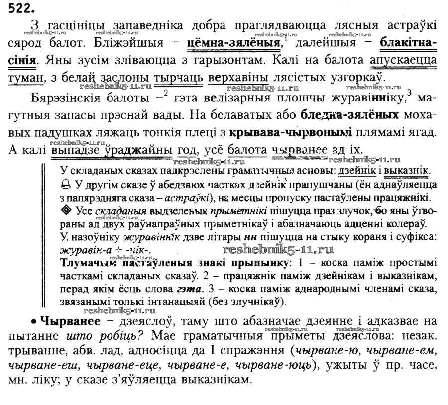 Готовая домашняя работа с ответами по Белорусскому языку за 6 класс Красней, Лаурель, Рачэўскі Учебник Национальный институт образования 2015 ФГОС - Практыкаванні 522