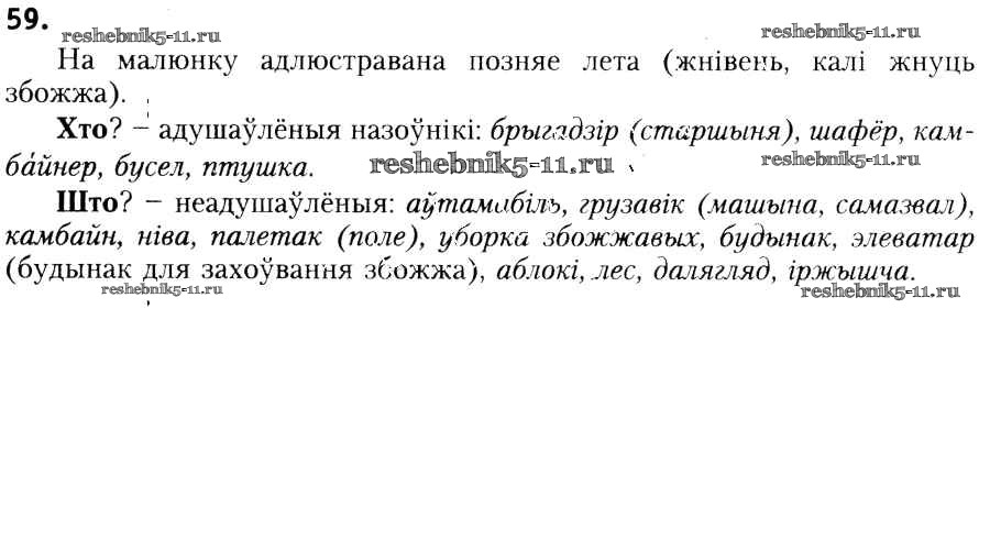 Готовая домашняя работа с ответами по Белорусскому языку за 6 класс Красней, Лаурель, Рачэўскі Учебник Национальный институт образования 2015 ФГОС - Практыкаванні 59