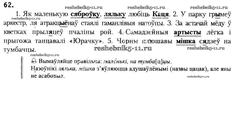 Готовая домашняя работа с ответами по Белорусскому языку за 6 класс Красней, Лаурель, Рачэўскі Учебник Национальный институт образования 2015 ФГОС - Практыкаванні 62