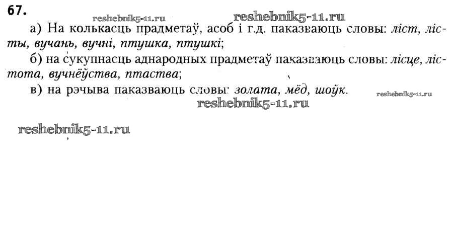 Готовая домашняя работа с ответами по Белорусскому языку за 6 класс Красней, Лаурель, Рачэўскі Учебник Национальный институт образования 2015 ФГОС - Практыкаванні 67