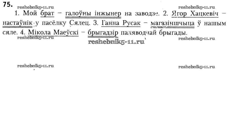 Готовая домашняя работа с ответами по Белорусскому языку за 6 класс Красней, Лаурель, Рачэўскі Учебник Национальный институт образования 2015 ФГОС - Практыкаванні 75