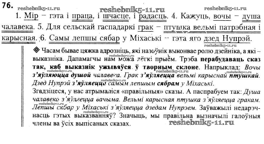 Готовая домашняя работа с ответами по Белорусскому языку за 6 класс Красней, Лаурель, Рачэўскі Учебник Национальный институт образования 2015 ФГОС - Практыкаванні 76