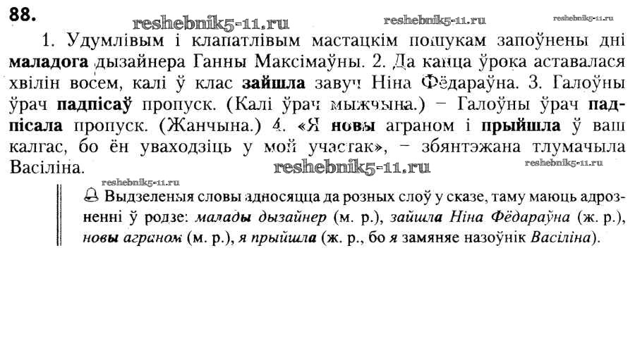 Готовая домашняя работа с ответами по Белорусскому языку за 6 класс Красней, Лаурель, Рачэўскі Учебник Национальный институт образования 2015 ФГОС - Практыкаванні 88