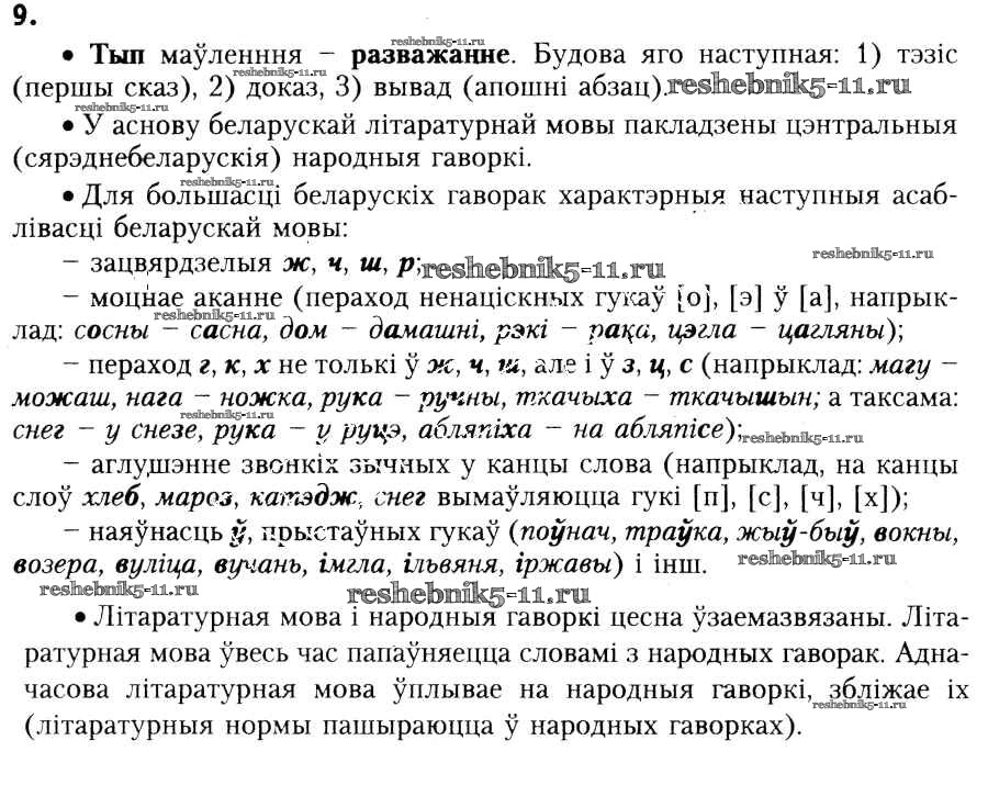 Готовая домашняя работа с ответами по Белорусскому языку за 6 класс Красней, Лаурель, Рачэўскі Учебник Национальный институт образования 2015 ФГОС - Практыкаванні 9