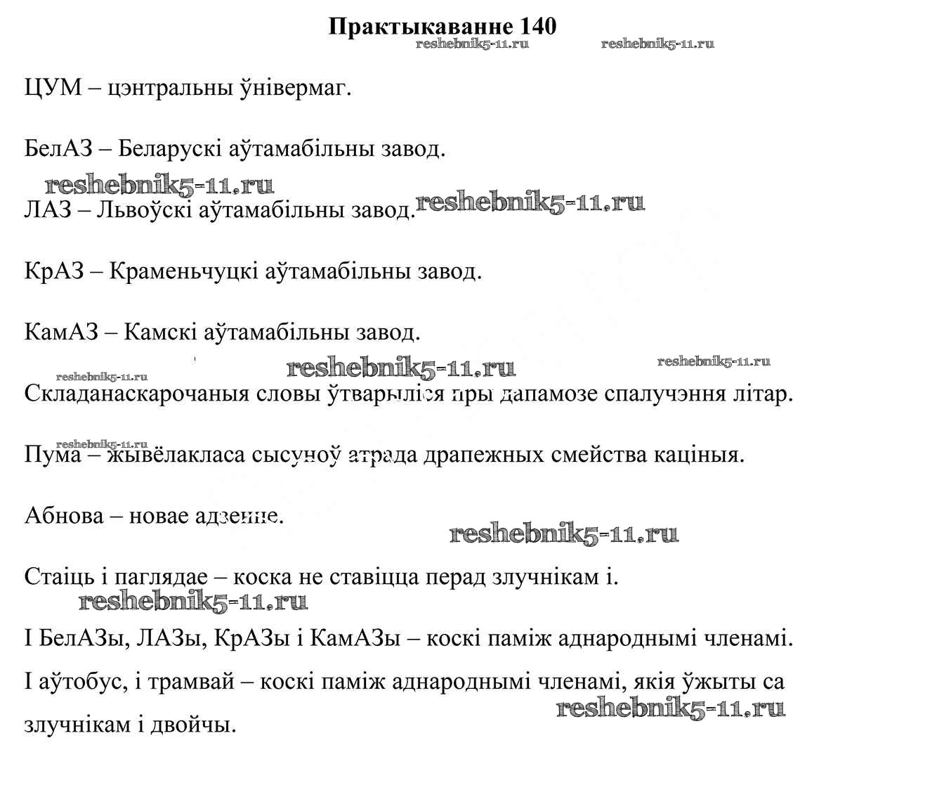 Готовая домашняя работа с ответами по Белорусскому языку за 6 класс Валочка, Зелянко, Мартынкевіч, Якуба, Бажкова Учебник Национальный институт образования 2020 - Практыкаванні 140