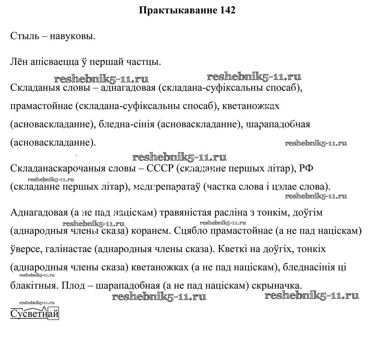 Готовая домашняя работа с ответами по Белорусскому языку за 6 класс Валочка, Зелянко, Мартынкевіч, Якуба, Бажкова Учебник Национальный институт образования 2020 - Практыкаванні 142