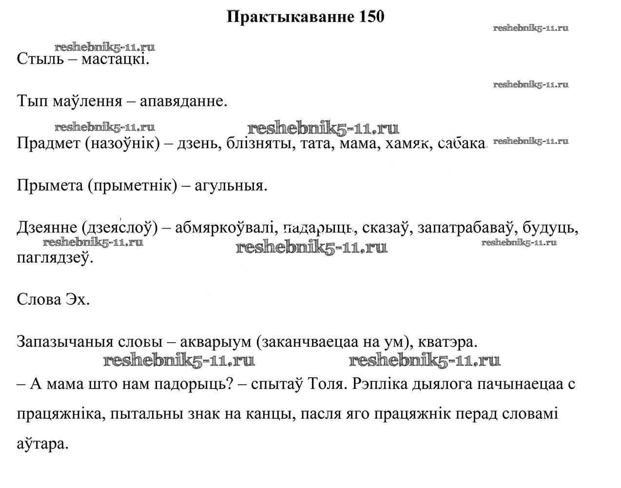 Готовая домашняя работа с ответами по Белорусскому языку за 6 класс Валочка, Зелянко, Мартынкевіч, Якуба, Бажкова Учебник Национальный институт образования 2020 - Практыкаванні 150