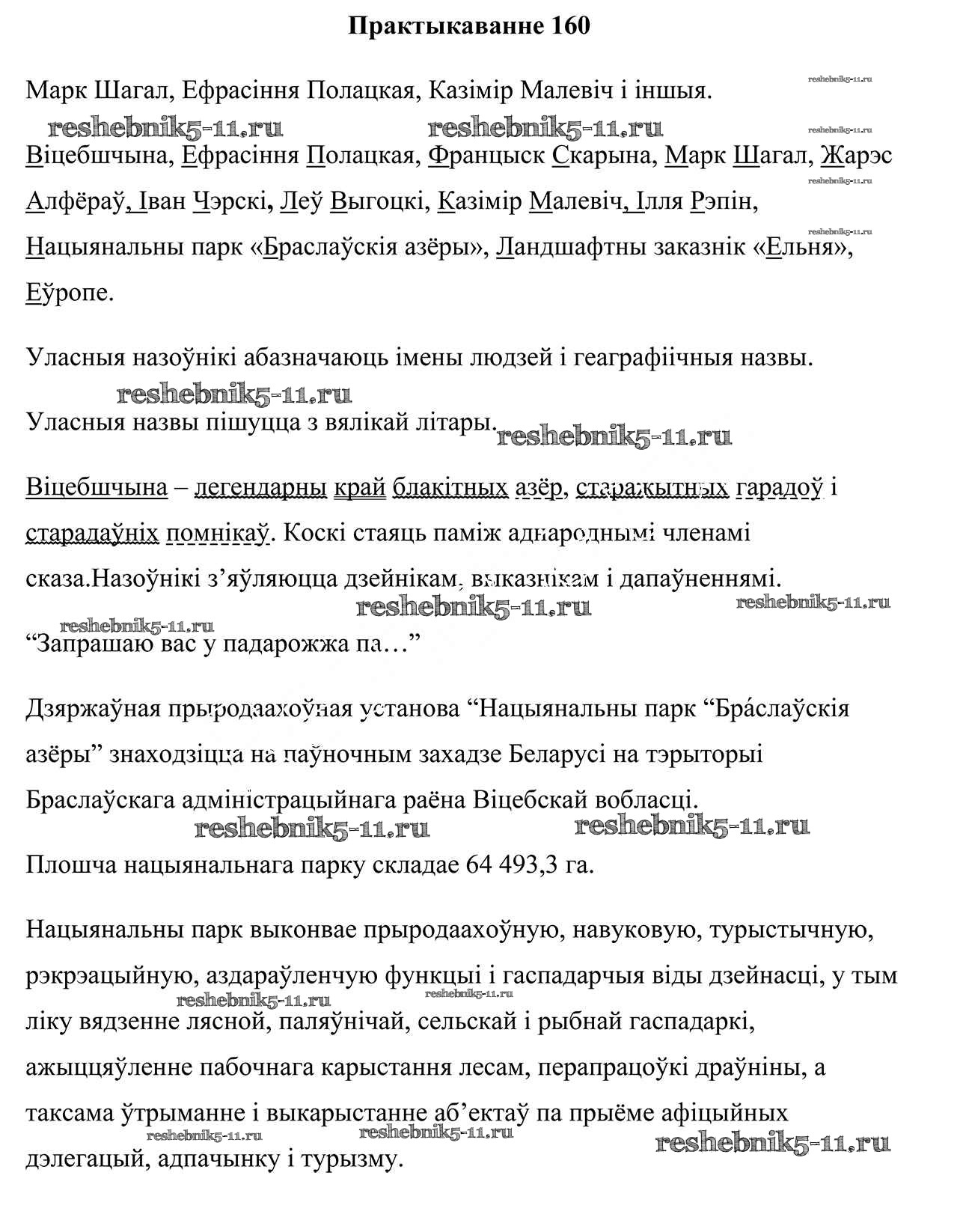 Готовая домашняя работа с ответами по Белорусскому языку за 6 класс Валочка, Зелянко, Мартынкевіч, Якуба, Бажкова Учебник Национальный институт образования 2020 - Практыкаванні 160