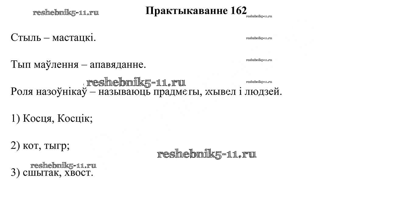 Готовая домашняя работа с ответами по Белорусскому языку за 6 класс Валочка, Зелянко, Мартынкевіч, Якуба, Бажкова Учебник Национальный институт образования 2020 - Практыкаванні 162