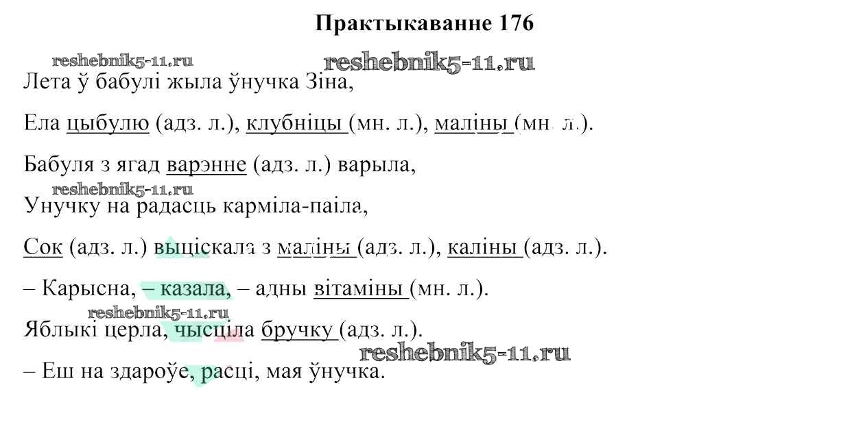 Готовая домашняя работа с ответами по Белорусскому языку за 6 класс Валочка, Зелянко, Мартынкевіч, Якуба, Бажкова Учебник Национальный институт образования 2020 - Практыкаванні 176