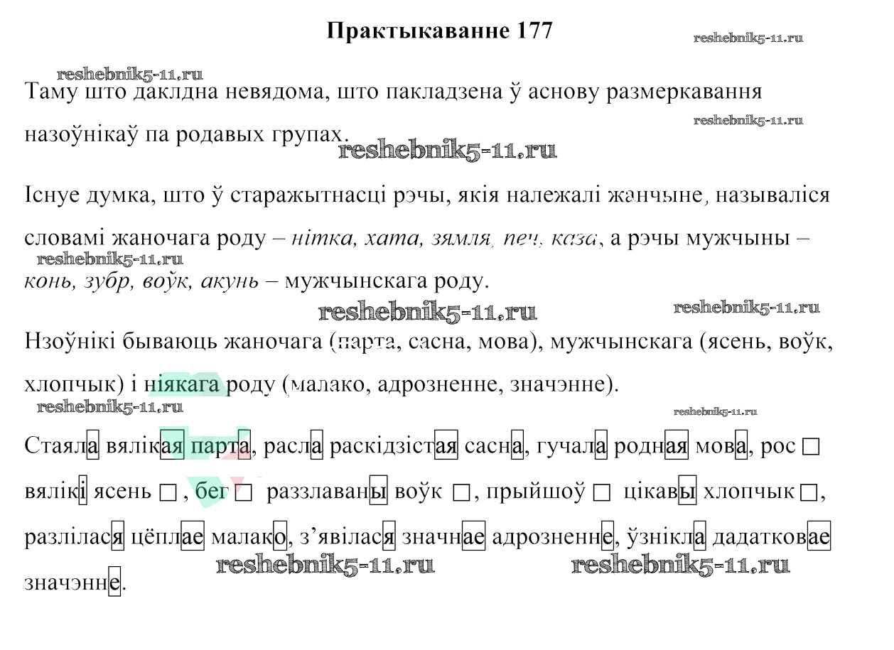 Готовая домашняя работа с ответами по Белорусскому языку за 6 класс Валочка, Зелянко, Мартынкевіч, Якуба, Бажкова Учебник Национальный институт образования 2020 - Практыкаванні 177