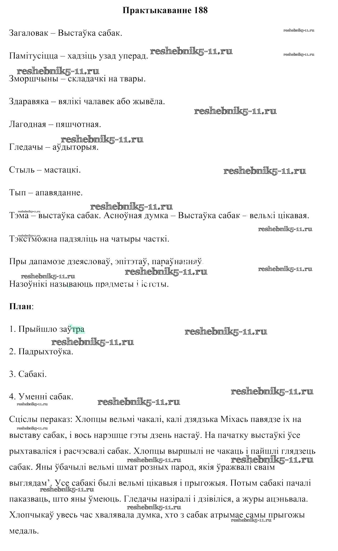 Готовая домашняя работа с ответами по Белорусскому языку за 6 класс Валочка, Зелянко, Мартынкевіч, Якуба, Бажкова Учебник Национальный институт образования 2020 - Практыкаванні 188
