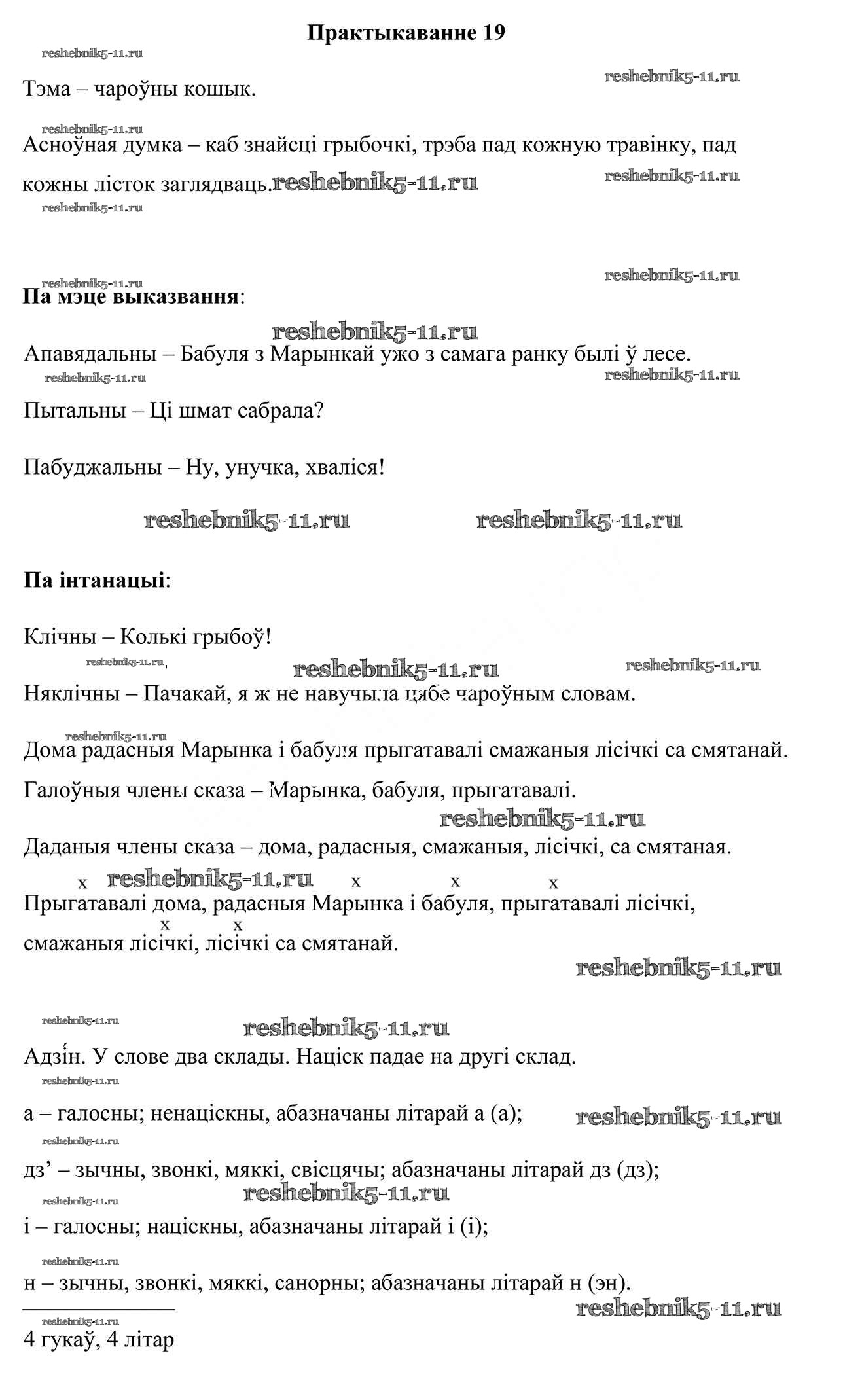 Готовая домашняя работа с ответами по Белорусскому языку за 6 класс Валочка, Зелянко, Мартынкевіч, Якуба, Бажкова Учебник Национальный институт образования 2020 - Практыкаванні 19