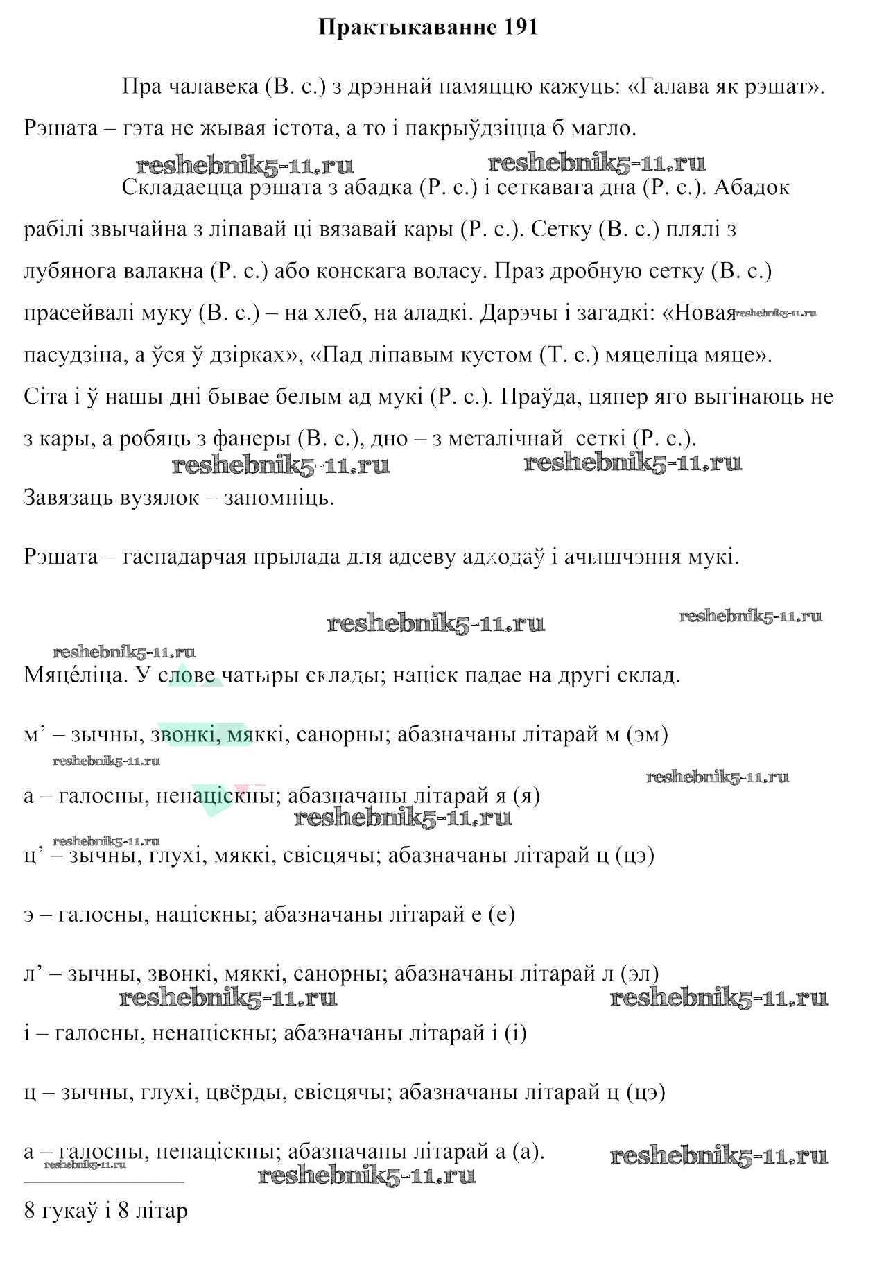 Белорусский язык за 6 класс Валочка Учебник Национальный институт образования практыкаванне 191